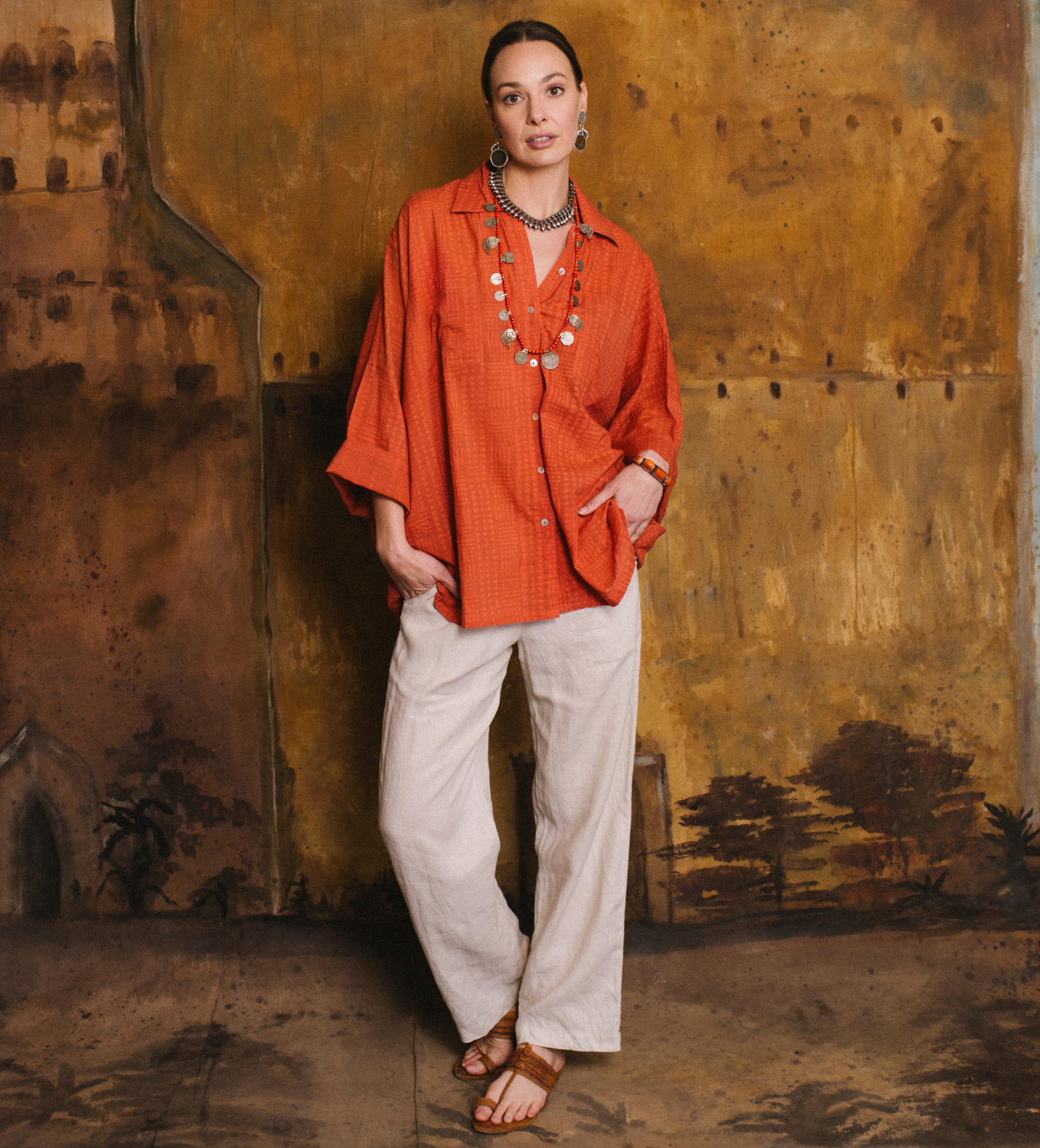 Crafted from a deliciously soft & lightly textured hand spun & woven mid weight cotton.