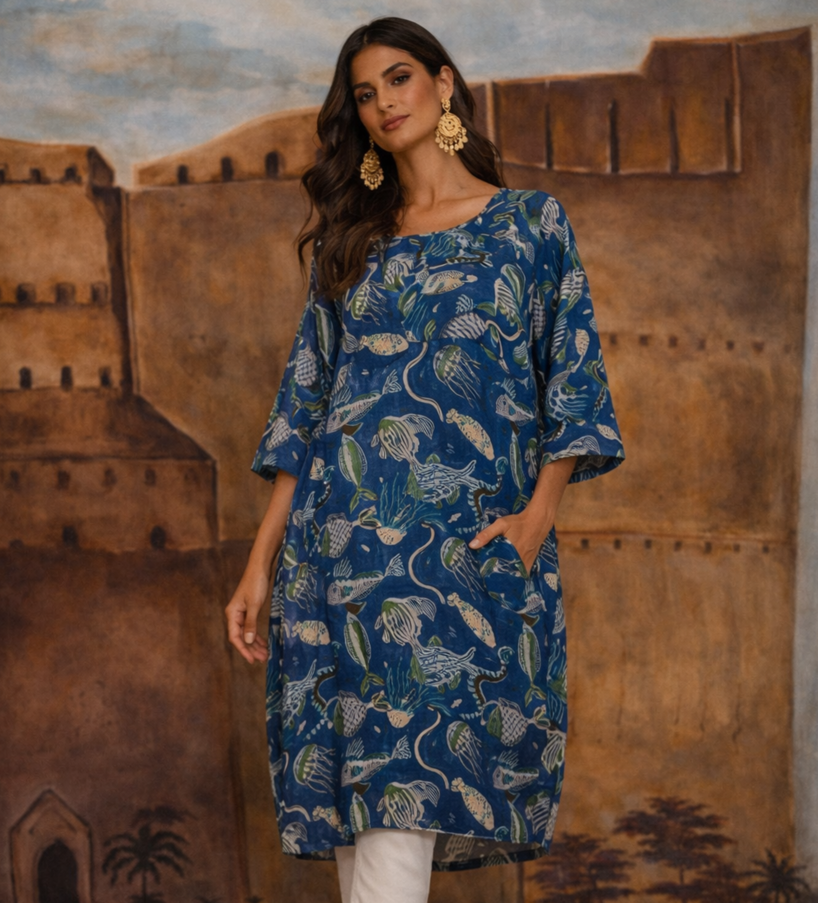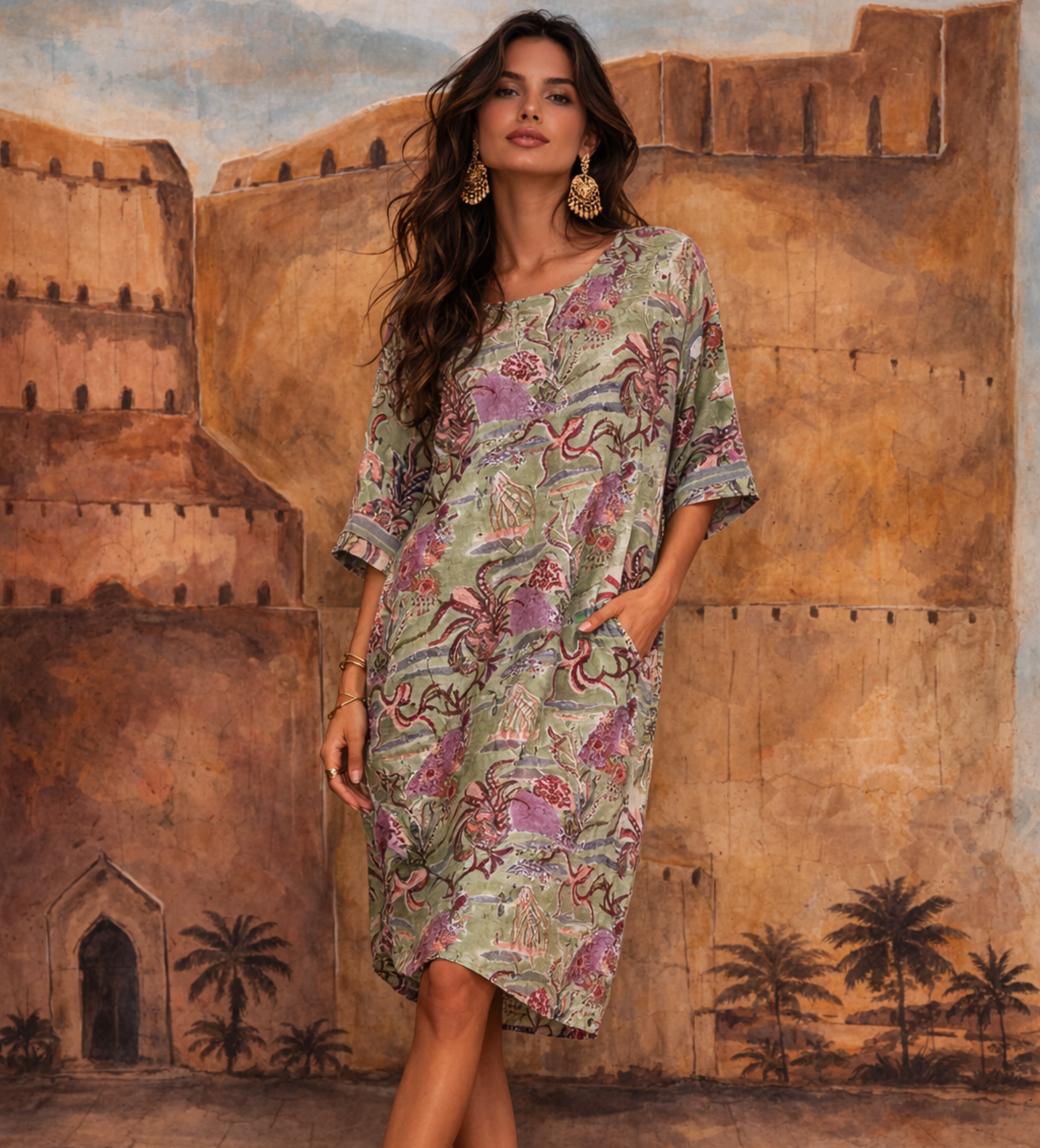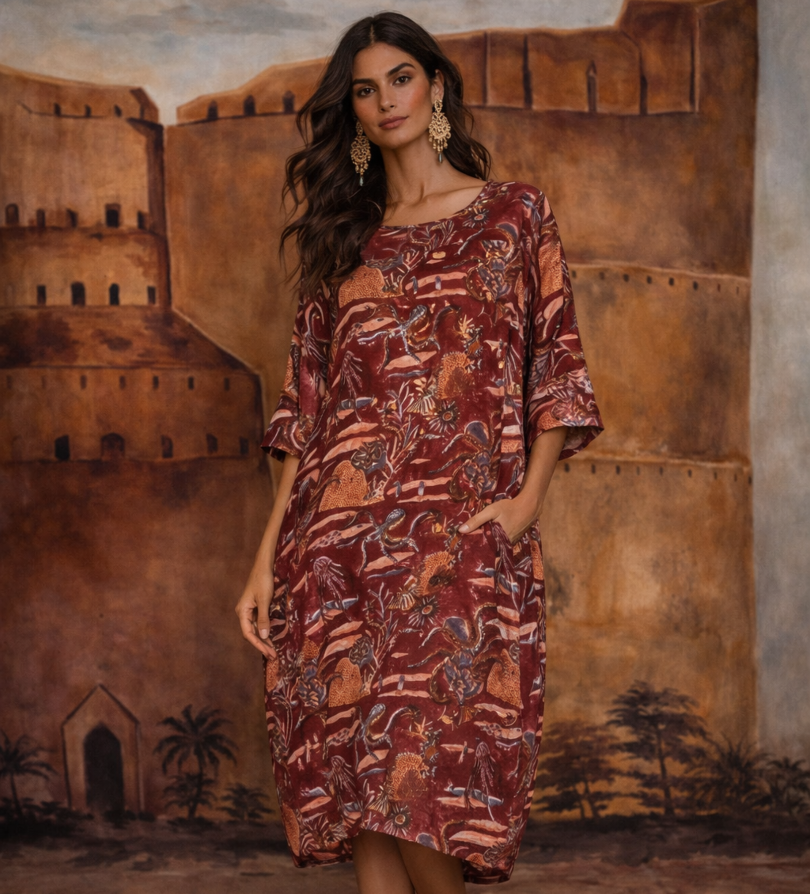 Stylist Tip: A show stopping piece with fun and chunky jewelry, or wear around the house while you entertain.