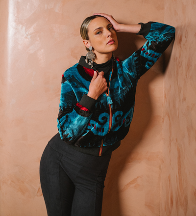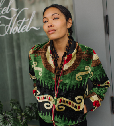 Alma Silk Velvet Bomber Jacket