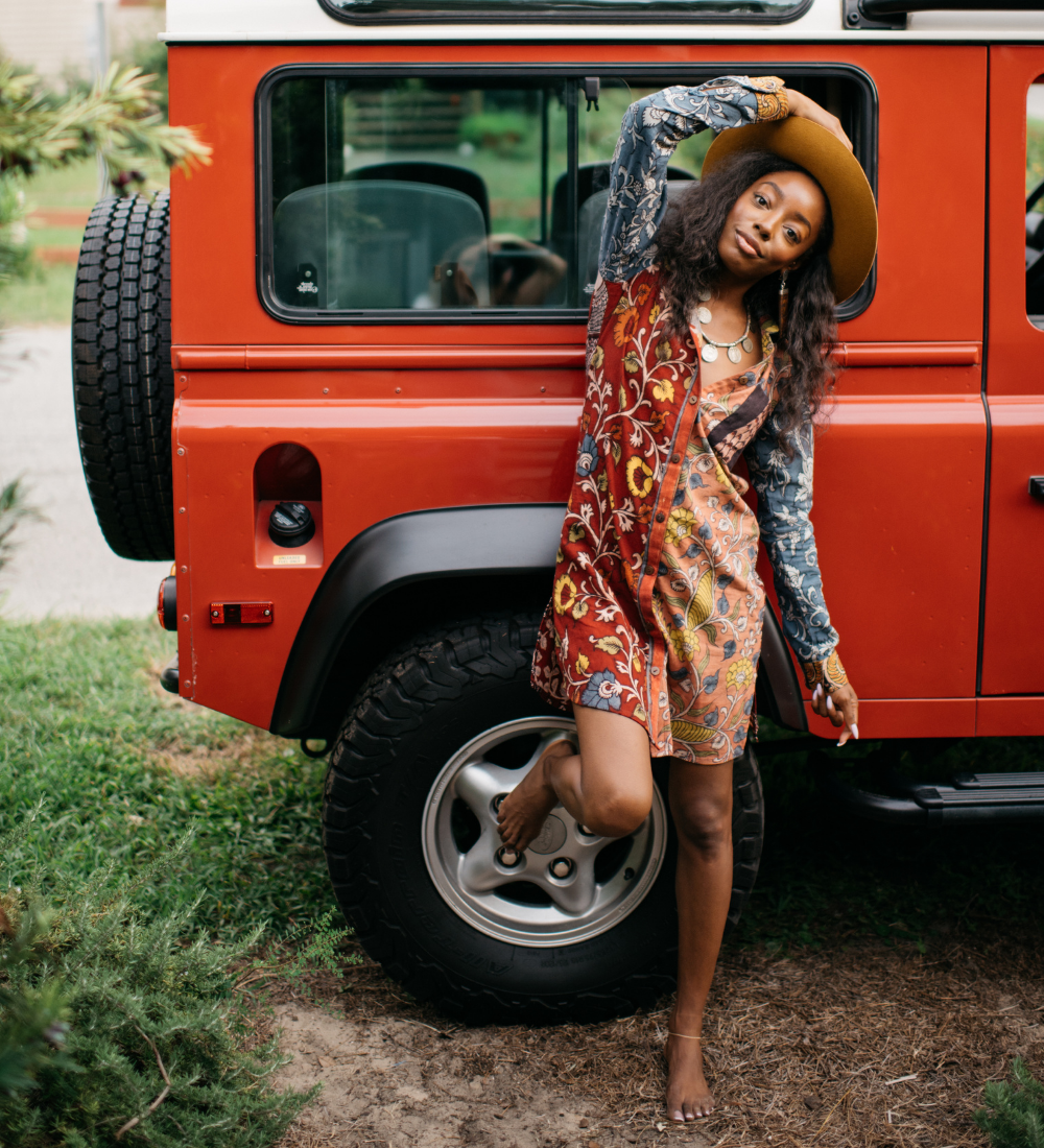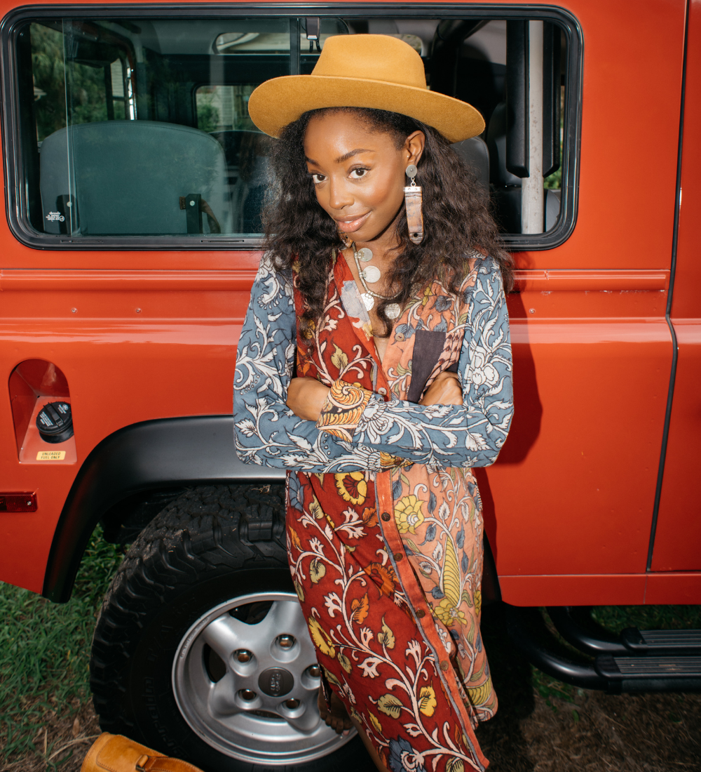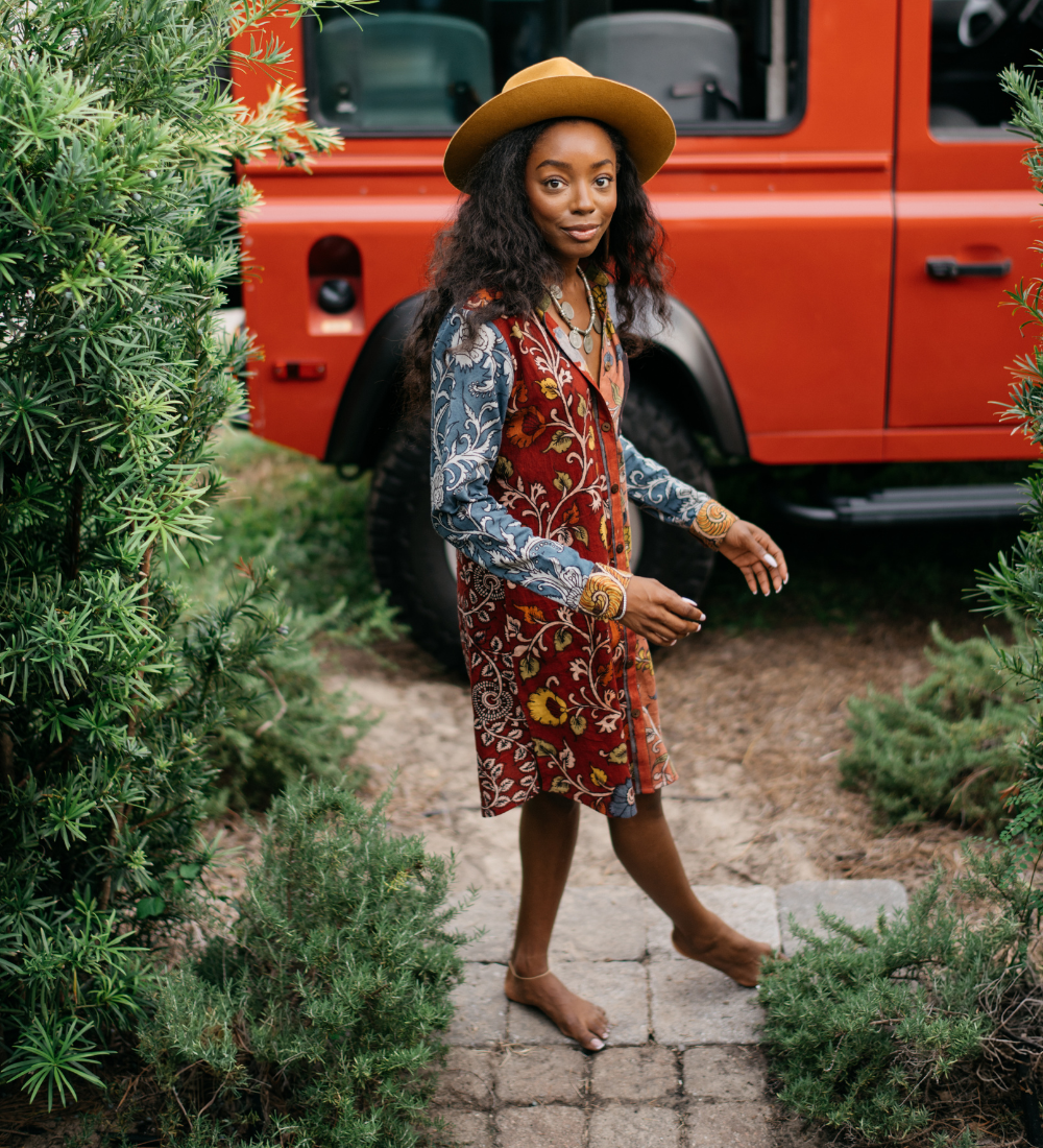 In India, Kalamkari is an ancient tradition of hand-painting on cotton. This shirt dress carries on that heritage with five distinct hand-painted artworks — each brushstroke made by artisans near Bangalore. These are not prints, but true paintings on fabric, making every piece a wearable work of art.
