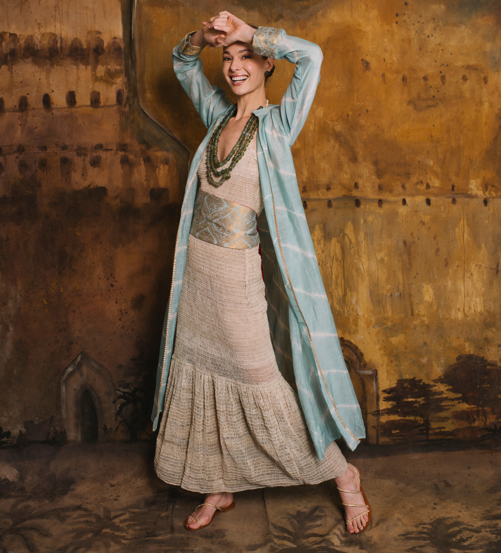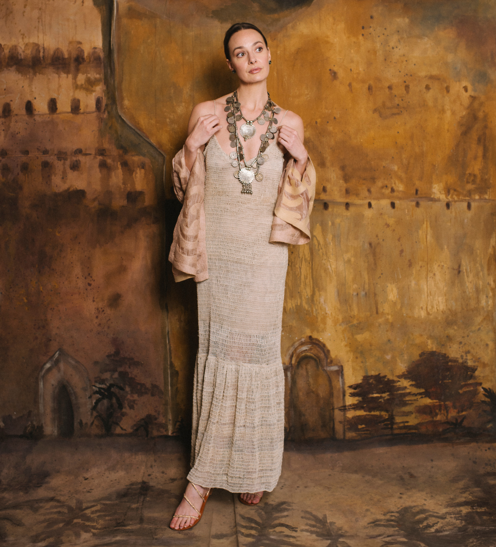 Stylist Tip: Pair this flowing silhouette with the cropped Chaguar jacket for a textural statement, or wear it on its own with earthy-toned accessories for an elegant fall look.