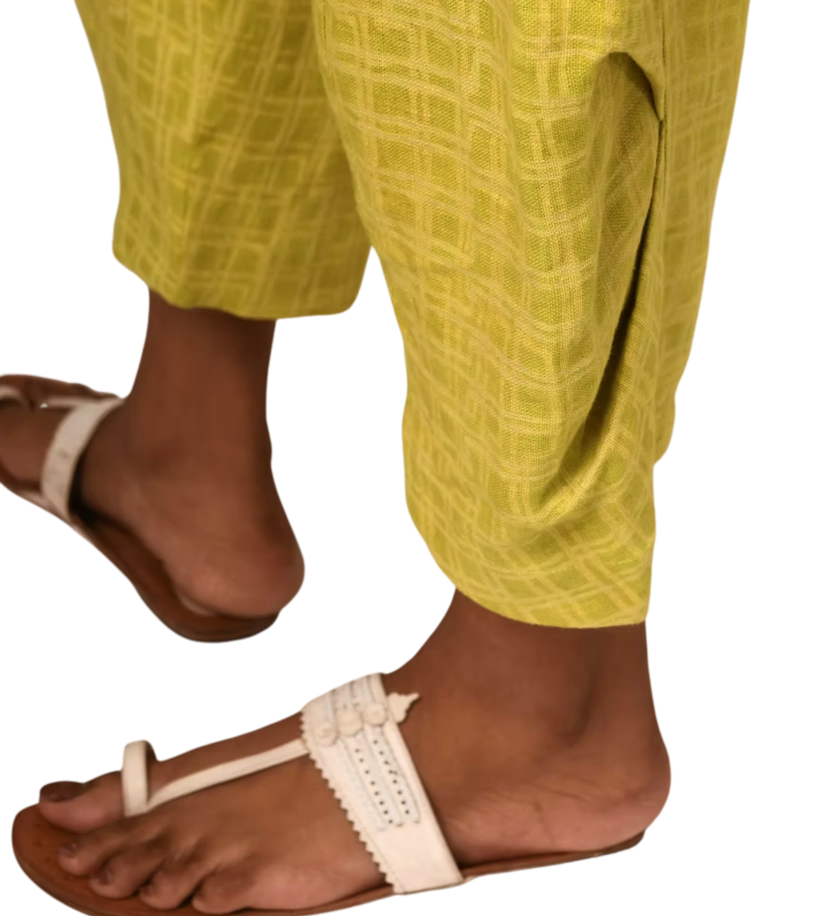 These pants are a unique approach to the traditional Indian salwar pant: this pant is more fitted but allows for total movement & comfort. An origami-style tuck in the lower leg gives a beautifully structured shape to these otherwise loose pants. Embellished with a laborious single-, double- or triple-step dabu mud resist block print, achieving a thoroughly contemporary aesthetic to this ancient craft.