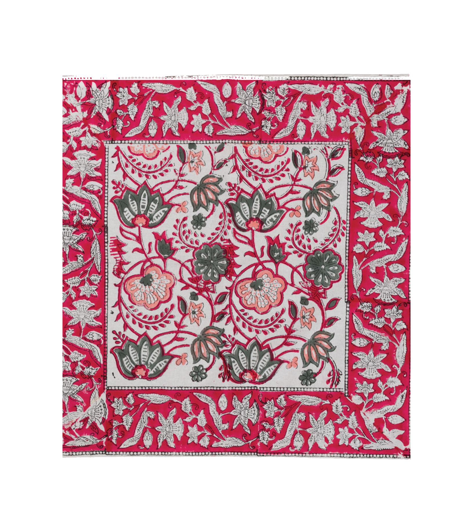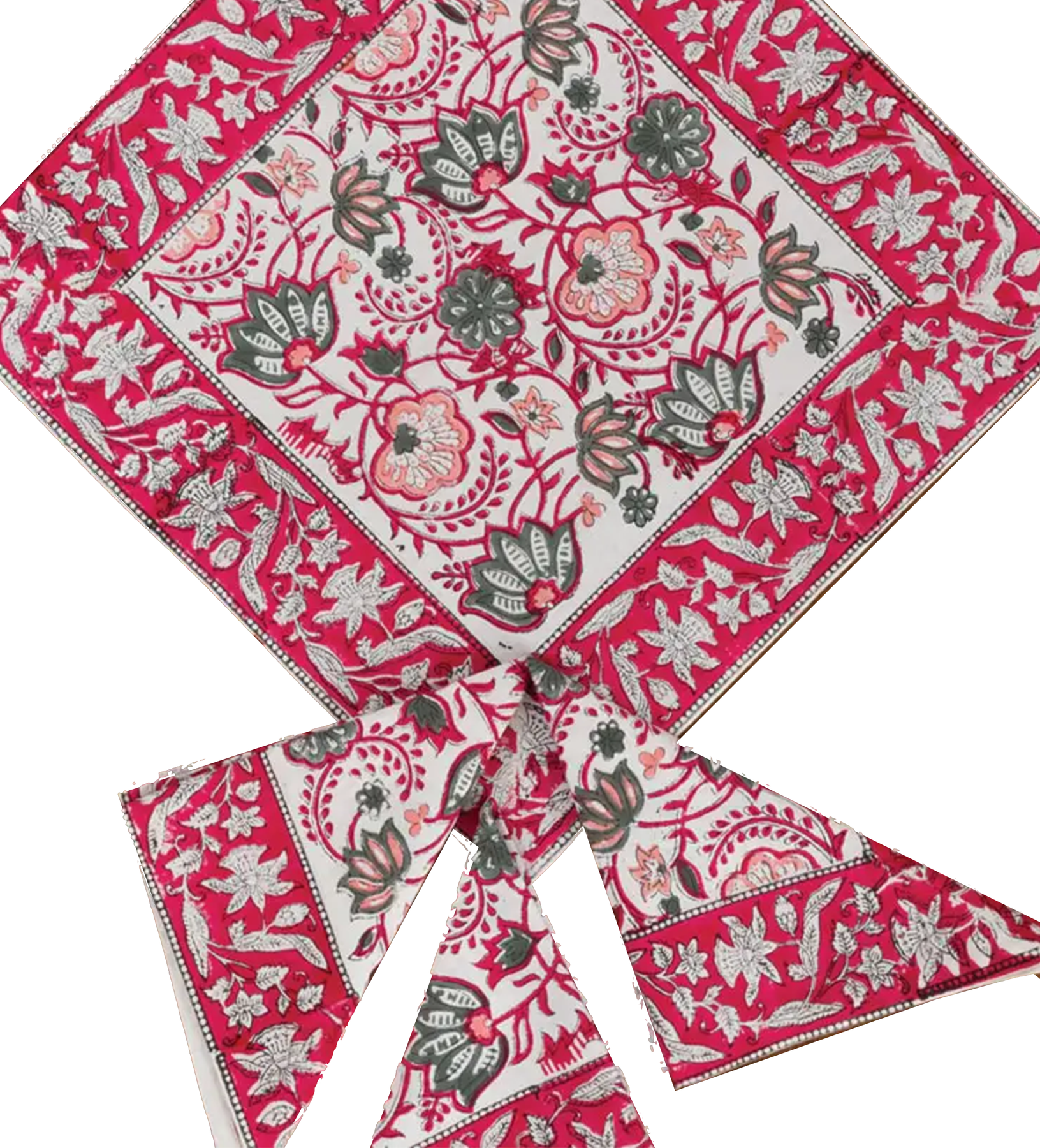 This wonderful block printed tablecloth from India is here to decorate your tablescape! Blocks carved by hand, dipped into ink, and then pressed into the tablecloth you see here.