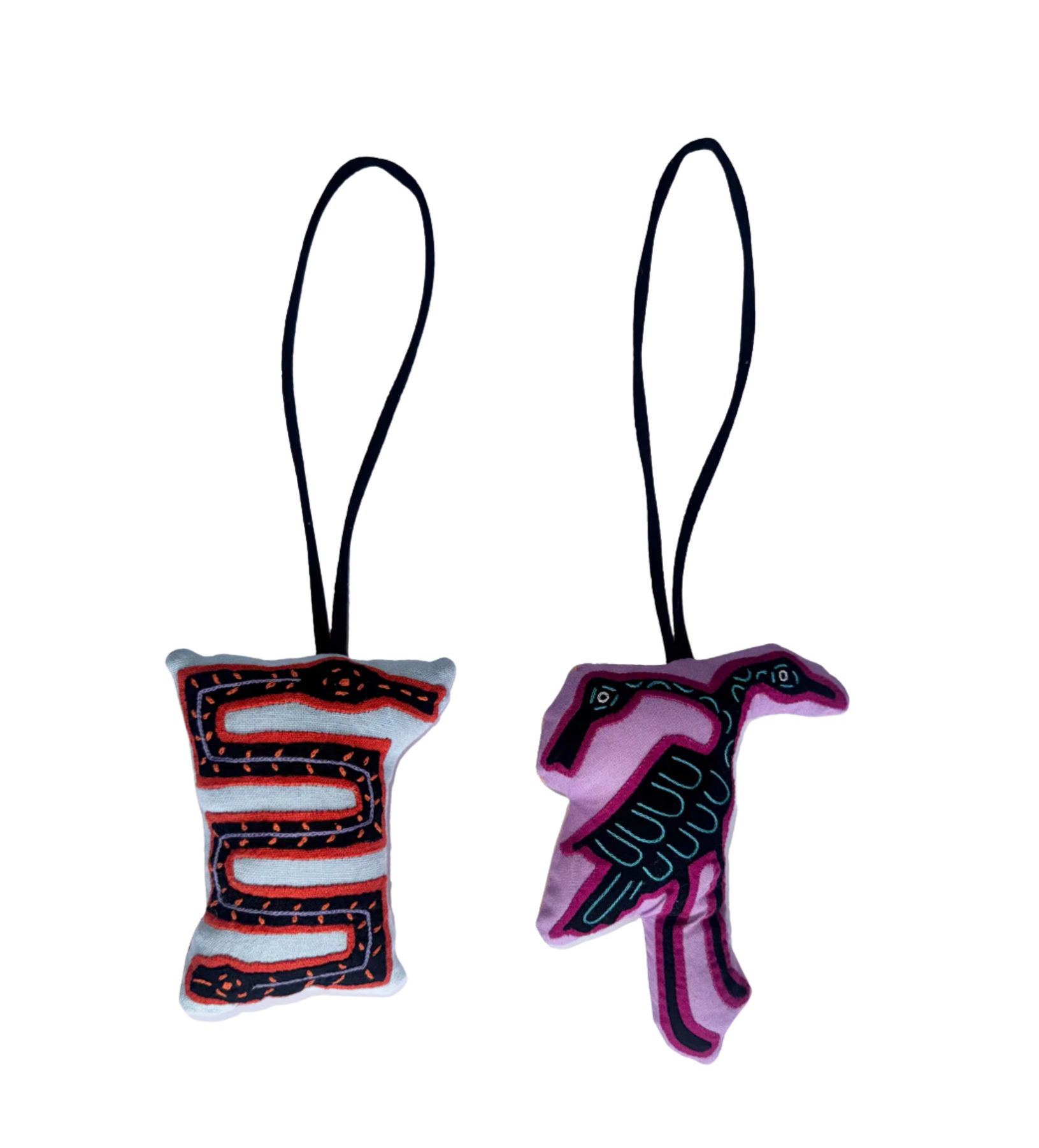 The Wild Animal Ornaments includes two of the most fascinating creatures in the wild, the serpent and the bird. Handmade in vivid Gunadule textiles, they're bold and playful. Mola ornaments in a variety of shapes and colors. Sold individually.